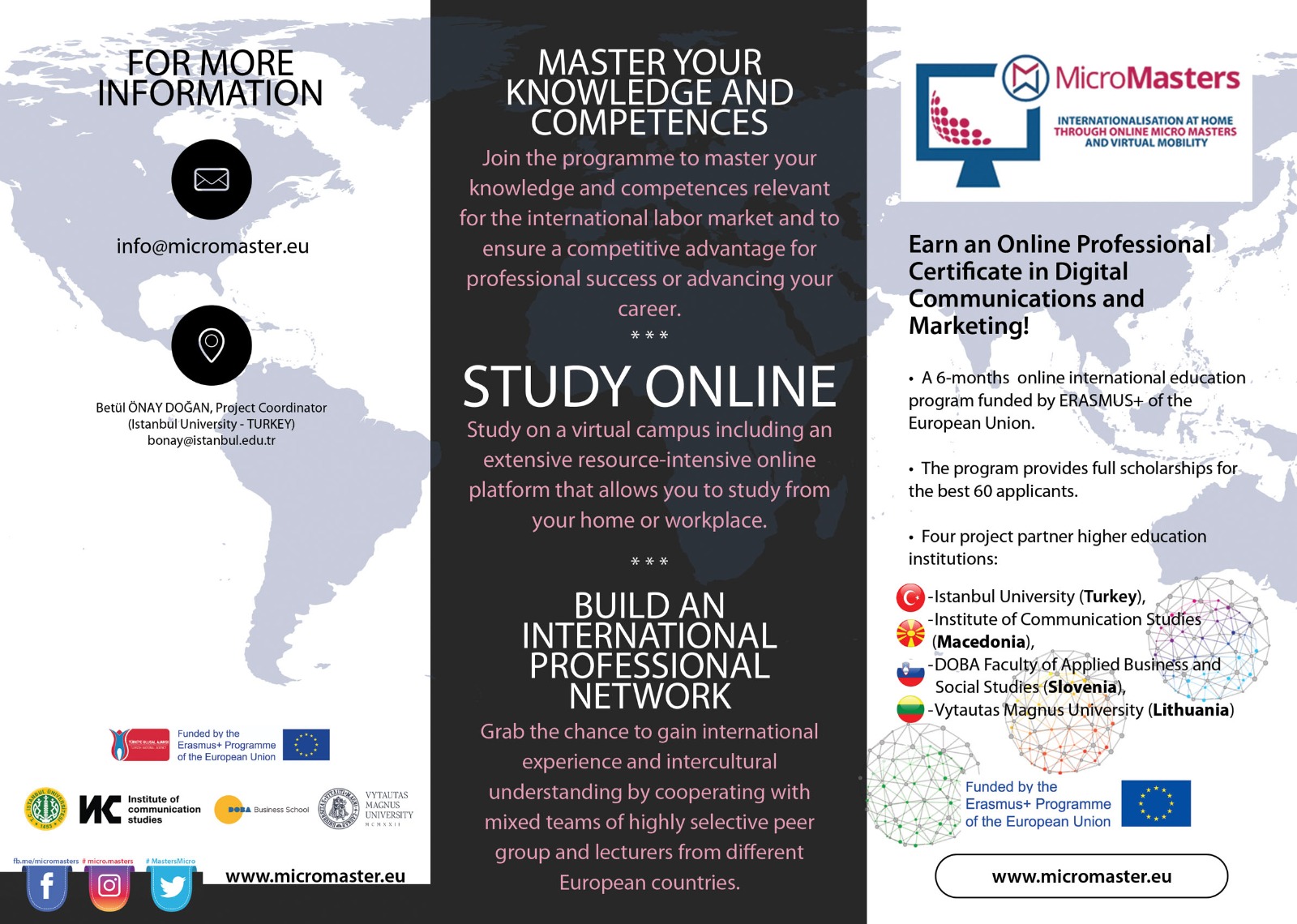 The Master@Home is funded under the Program ERASMUS+ of the European Union and provides full scholarships for its participants. The program will deliver an international certificate and 20 ECTS.