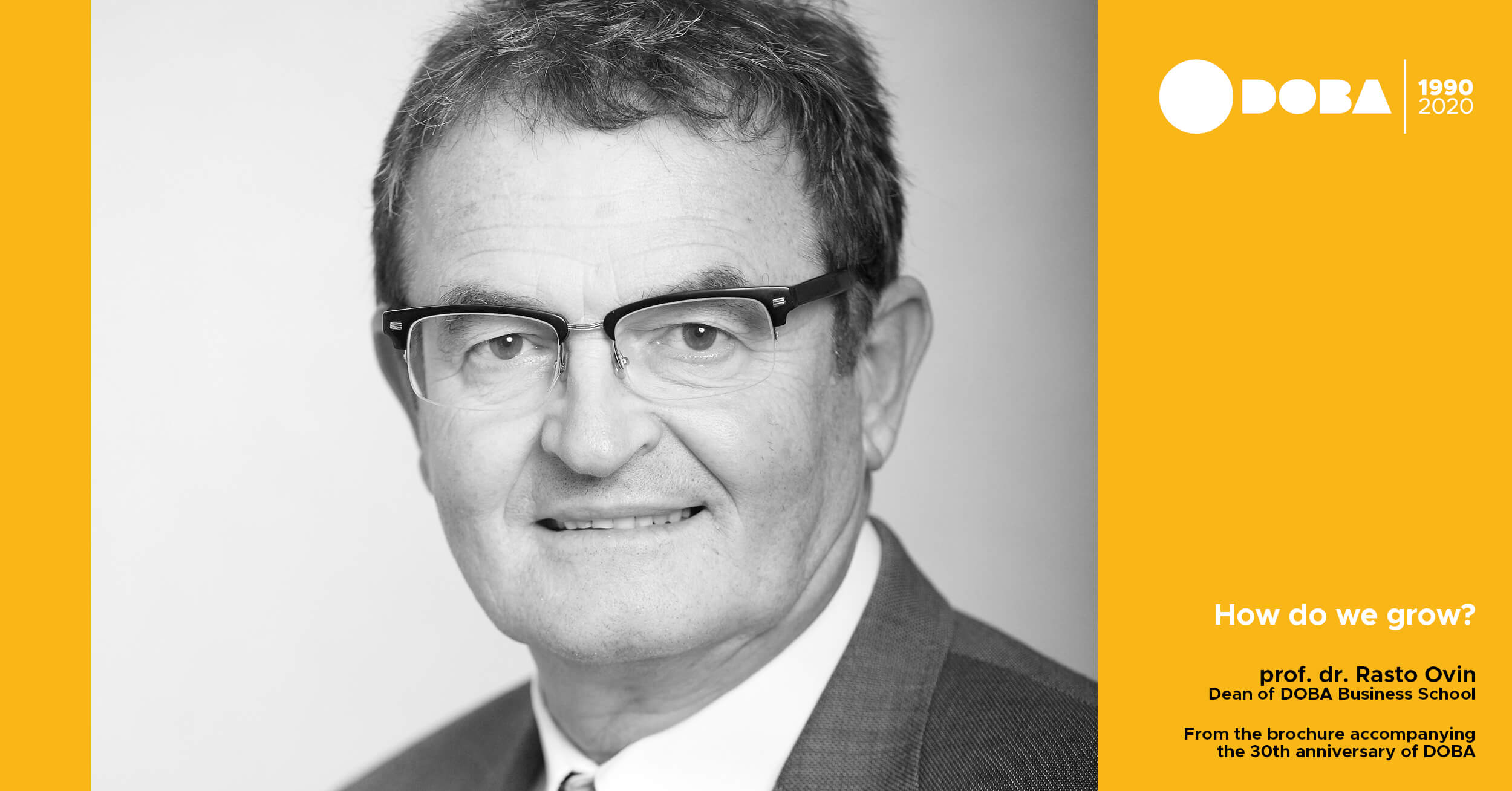 »The same as all great projects, DOBA Business School has its name. From the very beginnings thirty years ago until today, Jasna Dominko Baloh, Director of the DOBA Group, never stopped searching for new challenges and striving for higher standards, a fact attested to by the information provided in this brochure. It is an honour that we can be the stakeholders in this great project, which, in addition to knowledge, lets us know that change is the only constant of quality and growth.«